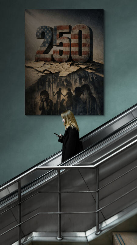“250 Years of Division” is a powerful, unflinching art statement created in the year the United States marks its 250th anniversary. Rather than celebrating longevity alone, this piece asks a harder question: