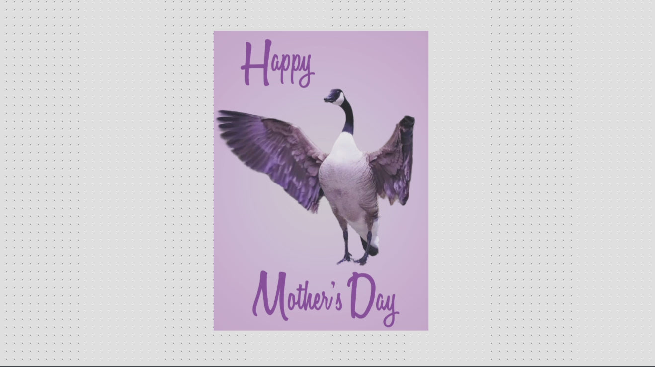 you've been a guiding light, leading with grace and nurturing love. Happy Mother's Day to someone who blooms with beauty and kindness." The second card, [05168] Cherry Blossoms, also includes matte cardstock, with a Mother's Day message printed inside: Just like the delicate cherry blossoms, your love brings beauty and warmth to our lives. Wishing you a Mother's Day as lovely and vibrant as you are. Thank you for filling our lives with your endless love and grace." The third card, [05482] Canada Goose with outstretched wings, includes the text: "Happy Mother's Day. Your Hugs Warm My Heart In every hug you’ve given, I’ve felt the warmth of a thousand sunny days. Your compassion has been my heart's shelter, teaching me the language of kindness and the courage to give more than I receive. May your day be as beautiful and heartwarming as the love and compassion you share so freely". Glossy cardstock.