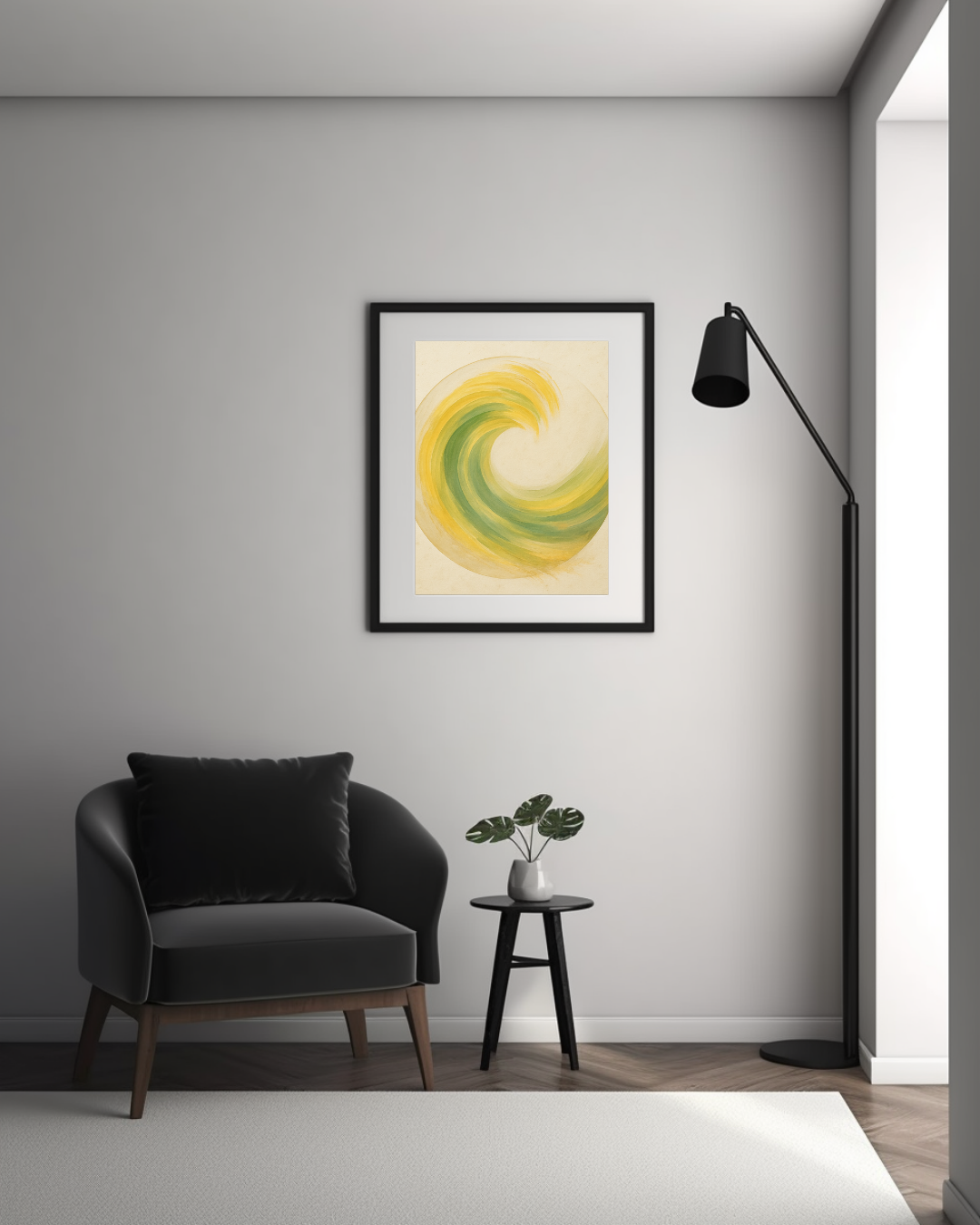 - Graceful tidal wave in yellow-green tones