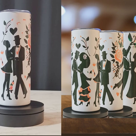 Step into elegance with the "I'll Take You Dancing" tumbler, a celebration of movement, romance, and timeless charm. Featuring a beautifully illustrated dance scene, this tumbler is perfect for those who love the rhythm of life. Whether you're sipping your morning coffee or an evening refreshment, this 20 oz dishwasher-safe tumbler keeps your drinks at the perfect temperature while adding a touch of sophistication to your day.