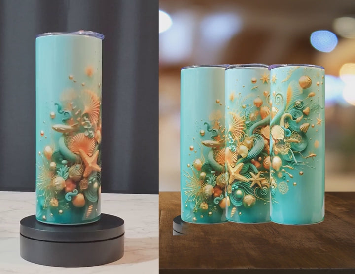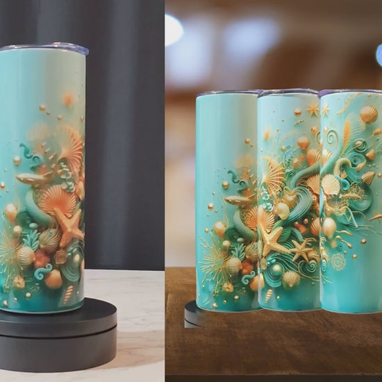 Immerse yourself in the enchanting beauty of the ocean with our Marine Life Elegance Skinny Tumbler. This captivating design showcases a stunning blend of golden seashells, starfish, and flowing teal waves, creating a serene and sophisticated look. Perfect for ocean lovers and anyone drawn to marine-inspired artistry, this dishwasher-safe 20 oz tumbler combines elegance with practicality. Whether you're at the beach or on the go, this tumbler is the ideal companion for keeping your beverages at the perfect temperature. A thoughtful gift for nature enthusiasts and ocean dreamers alike!