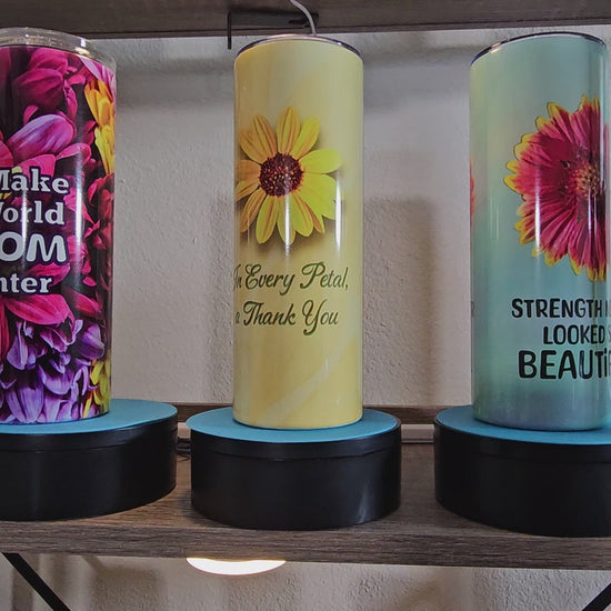 - Each tumbler includes a different floral quote