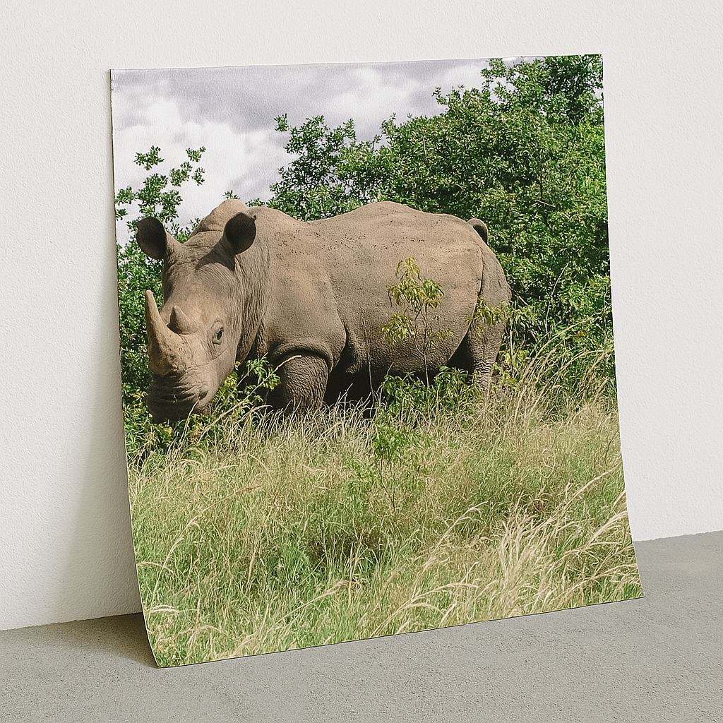 Bring the raw beauty of the African wild into your space with The Watchful Giant, an original wildlife photograph captured on safari in Nairobi, Kenya. Featuring a powerful rhinoceros emerging from dense bush, this image showcases the strength, mystery, and majesty of one of Africa’s most iconic creatures.