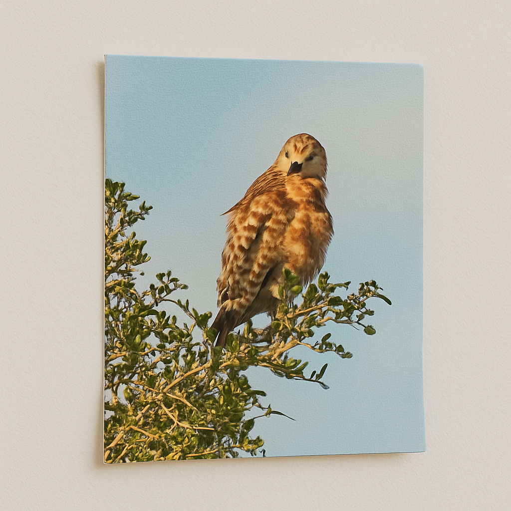 With piercing eyes and feathers kissed by the golden light of early morning, this hawk embodies resilience, precision, and untamed beauty. Ideal for bird lovers, conservationists, or anyone drawn to the awe-inspiring stillness of a predator in its element, this print brings the wild into your home with clarity and emotion.
